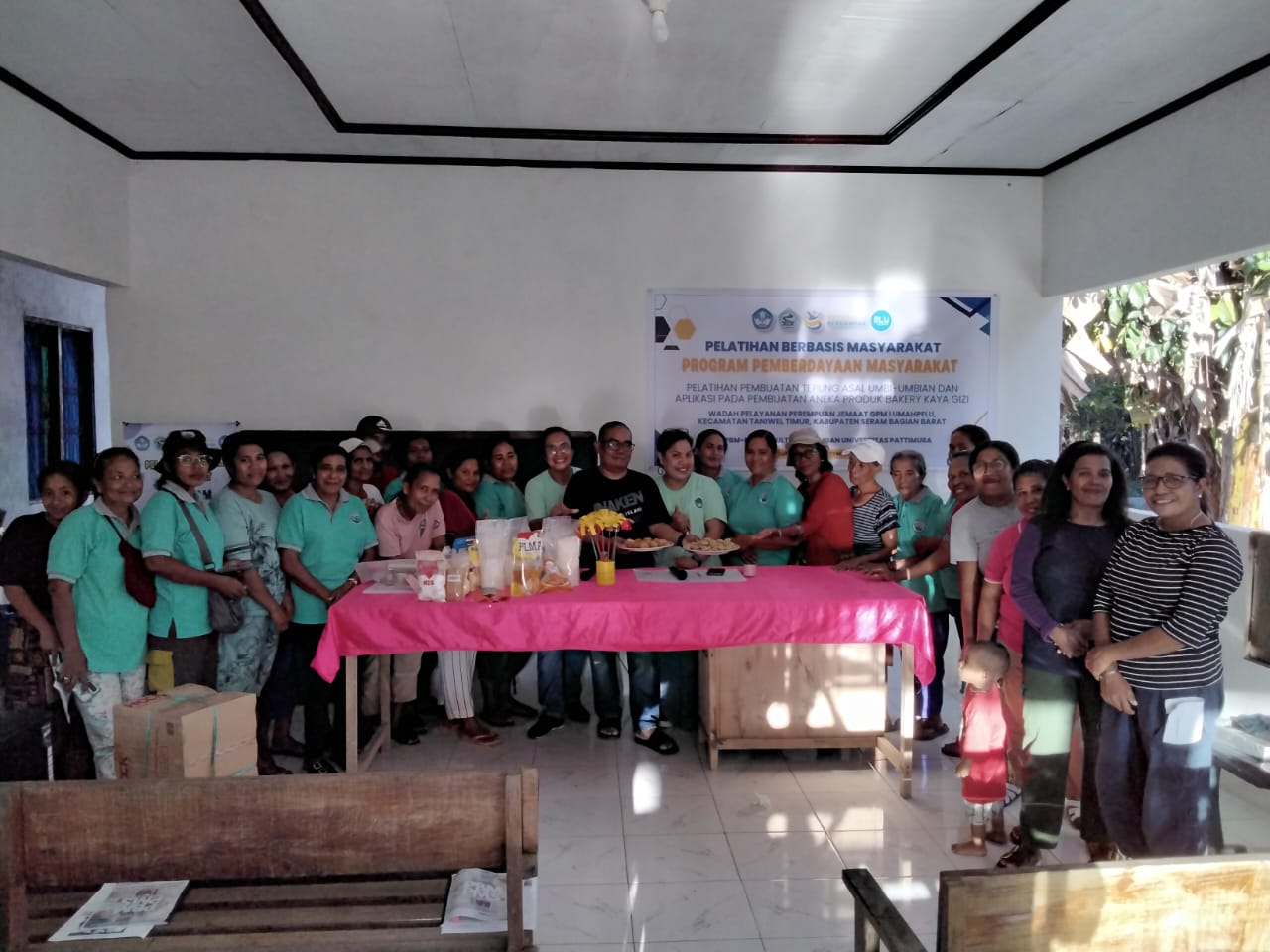 Seram Bagian Barat, 30 September 2025 — Tim dosen Universitas Pattimura melaksanakan kegiatan Pelatihan Pembuatan Tepung Asal Umbi-Umbian dan Aplikasinya pada Aneka Produk Bakery Kaya Gizi bagi ibu-ibu Wadah Pelayanan Perempuan Jemaat GPM Lumahpelu, Kecamatan Taniwel Timur, Kabupaten Seram Bagian Barat.