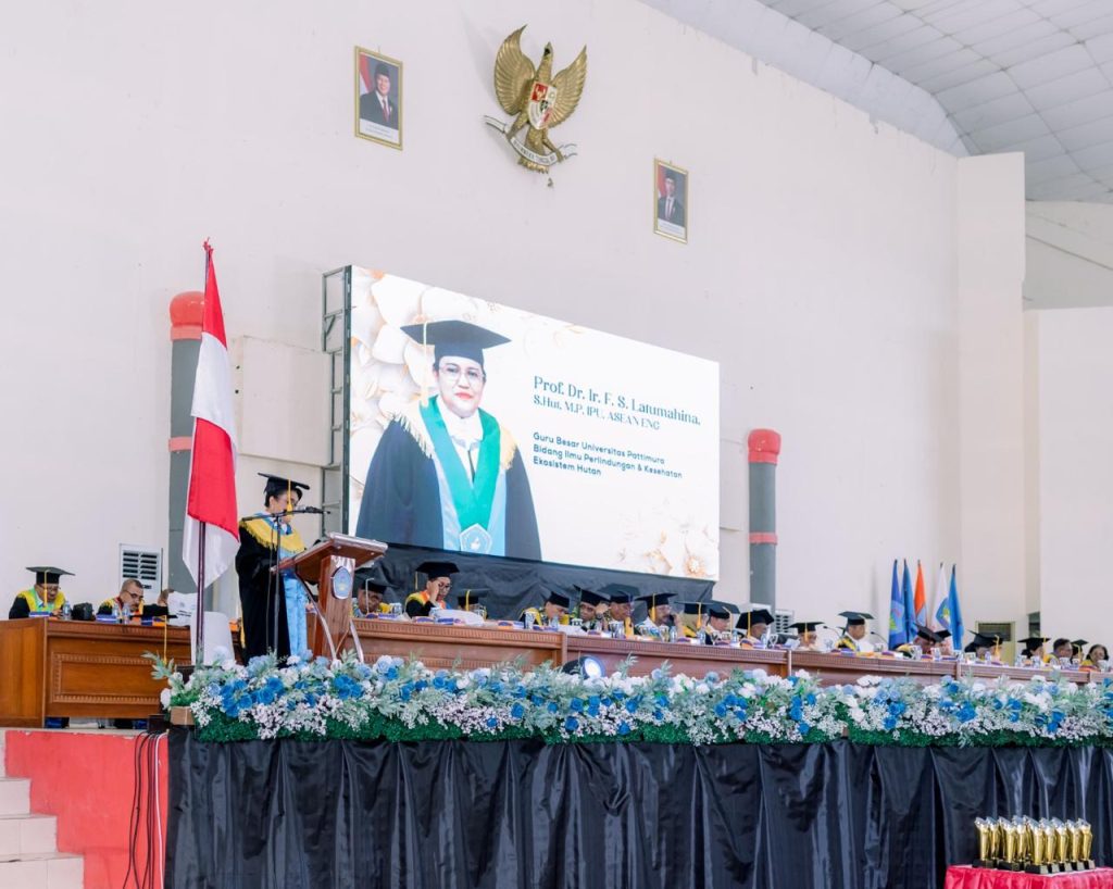 AMBON – Universitas Pattimura (Unpatti) Ambon kembali memperkuat kapasitas akademiknya melalui pengukuhan lima guru besar dalam Rapat Senat Terbuka Luar Biasa yang digelar pada Senin, 29 Desember 2025. Salah satu yang dikukuhkan adalah Prof. Dr. Ir. Fransina S. Latumahina, S.Hut., M.P., IPU., ASEAN Eng., dosen Jurusan Kehutanan, Program Studi Ilmu Kehutanan, Fakultas Pertanian, sebagai Guru Besar dalam bidang Ilmu Perlindungan dan Kesehatan Hutan.